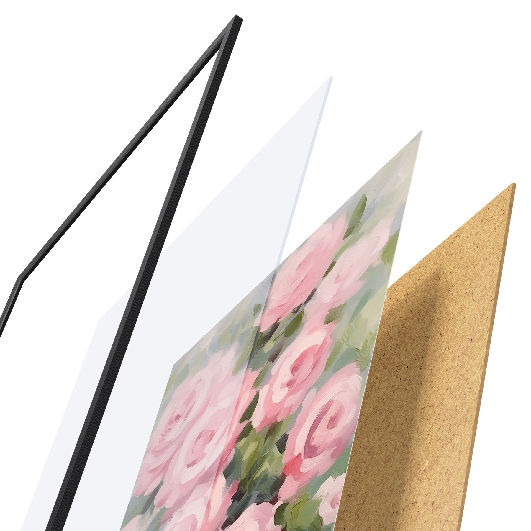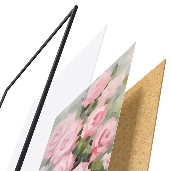 El póster consta de marco, plexiglás, imagen impresa y soporte de aglomerado. El póster puede colgarse inmediatamente en la pared gracias a los soportes de la parte posterior.