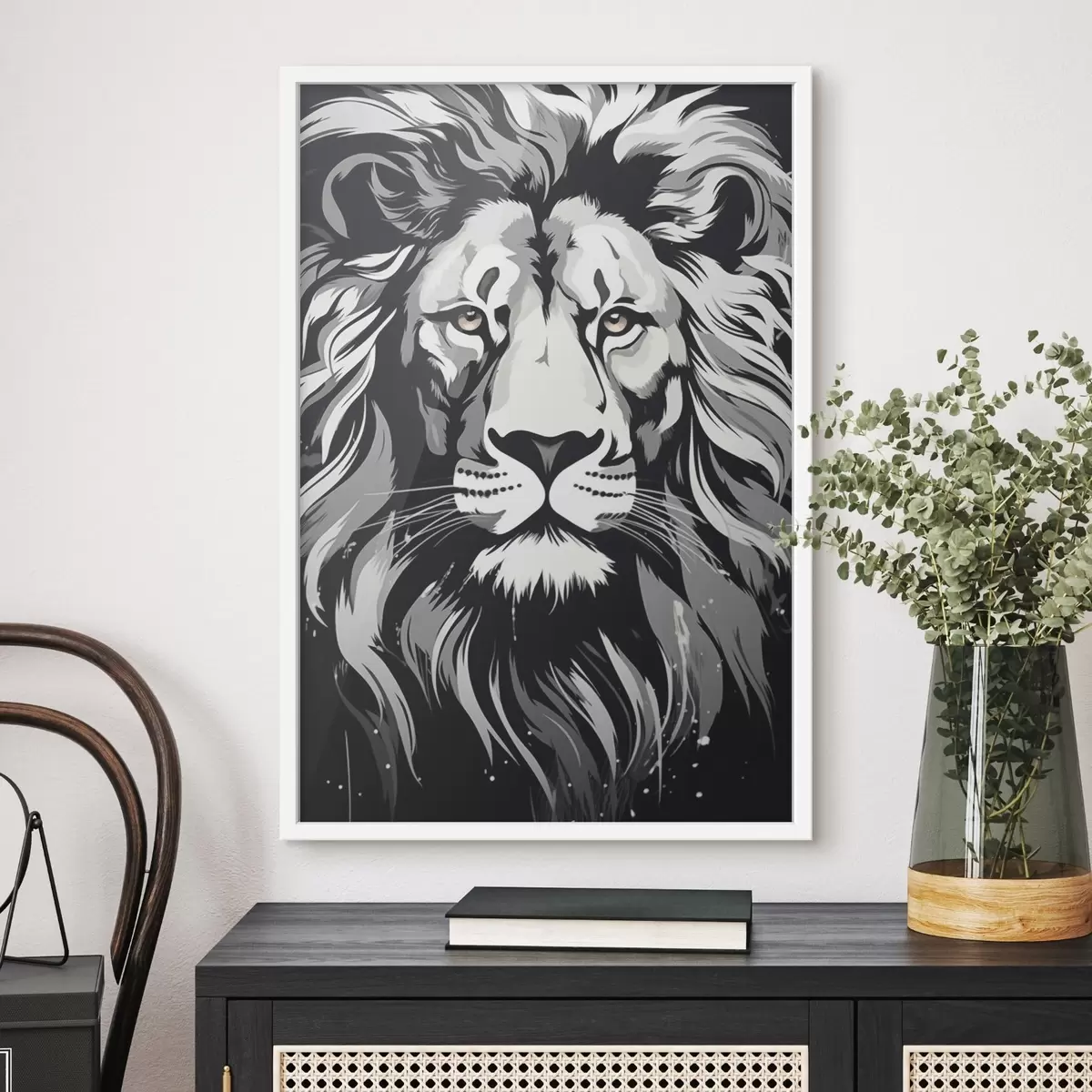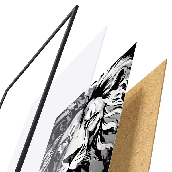 El póster consta de marco, plexiglás, imagen impresa y soporte de aglomerado. El póster puede colgarse inmediatamente en la pared gracias a los soportes de la parte posterior.
