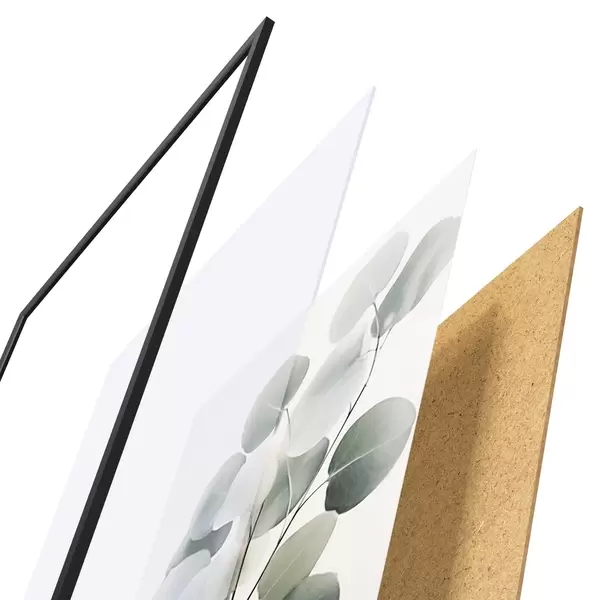 El póster consta de marco, plexiglás, imagen impresa y soporte de aglomerado. El póster puede colgarse inmediatamente en la pared gracias a los soportes de la parte posterior.
