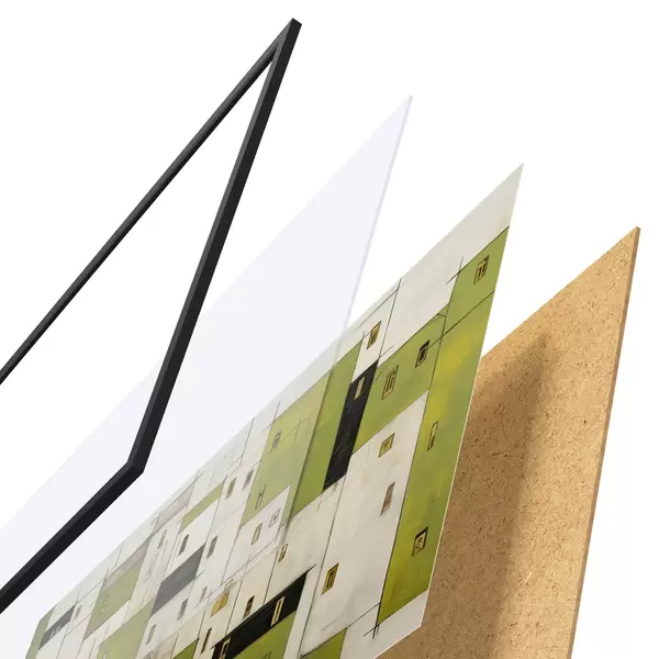 El póster consta de marco, plexiglás, imagen impresa y soporte de aglomerado. El póster puede colgarse inmediatamente en la pared gracias a los soportes de la parte posterior.