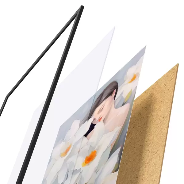 El póster consta de marco, plexiglás, imagen impresa y soporte de aglomerado. El póster puede colgarse inmediatamente en la pared gracias a los soportes de la parte posterior.