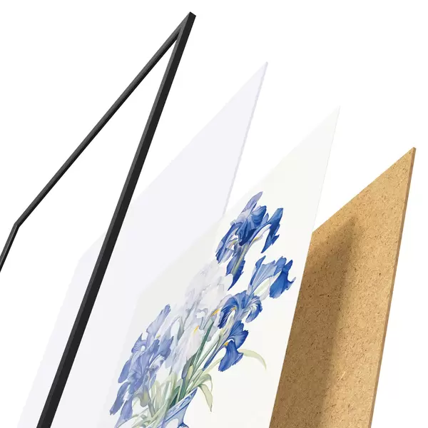 El póster consta de marco, plexiglás, imagen impresa y soporte de aglomerado. El póster puede colgarse inmediatamente en la pared gracias a los soportes de la parte posterior.