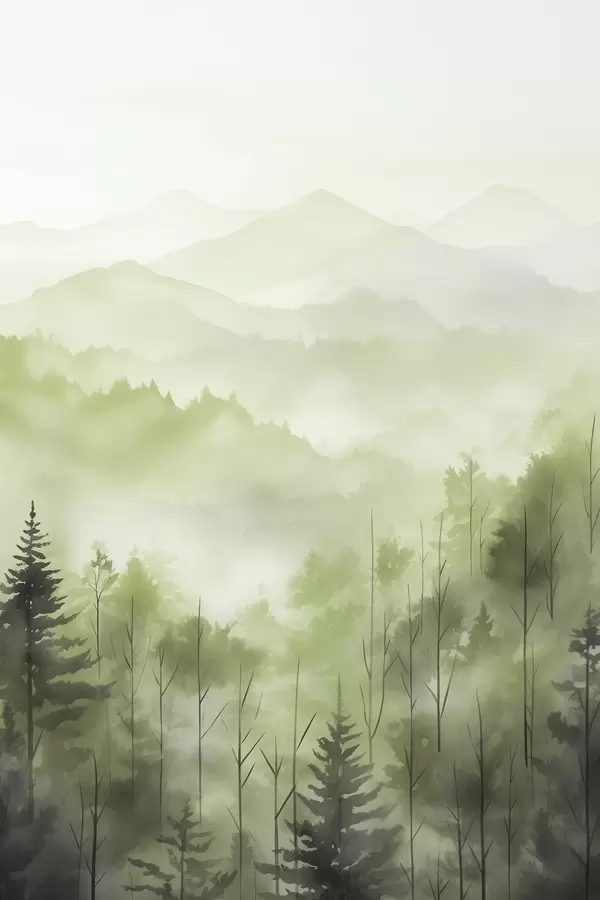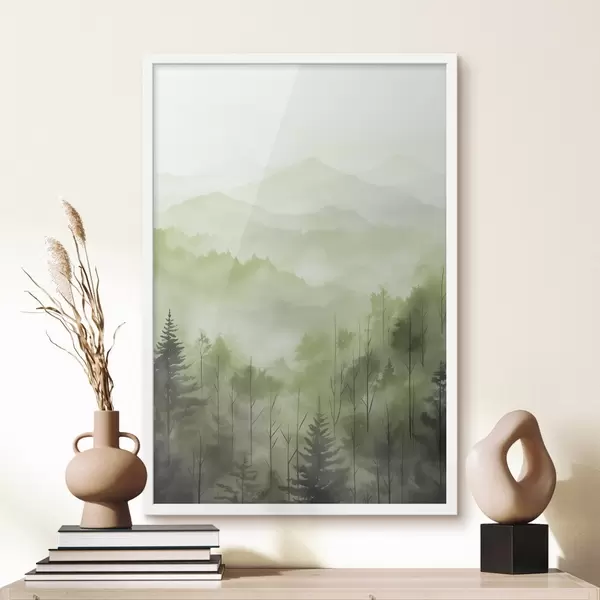Poster Montañas con paisaje forestal, colores verdes, estilo acuarela Nr f44606