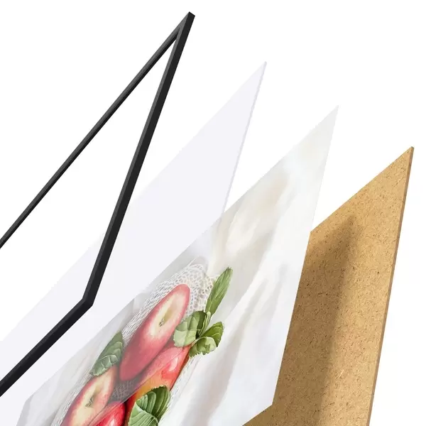 El póster consta de marco, plexiglás, imagen impresa y soporte de aglomerado. El póster puede colgarse inmediatamente en la pared gracias a los soportes de la parte posterior.