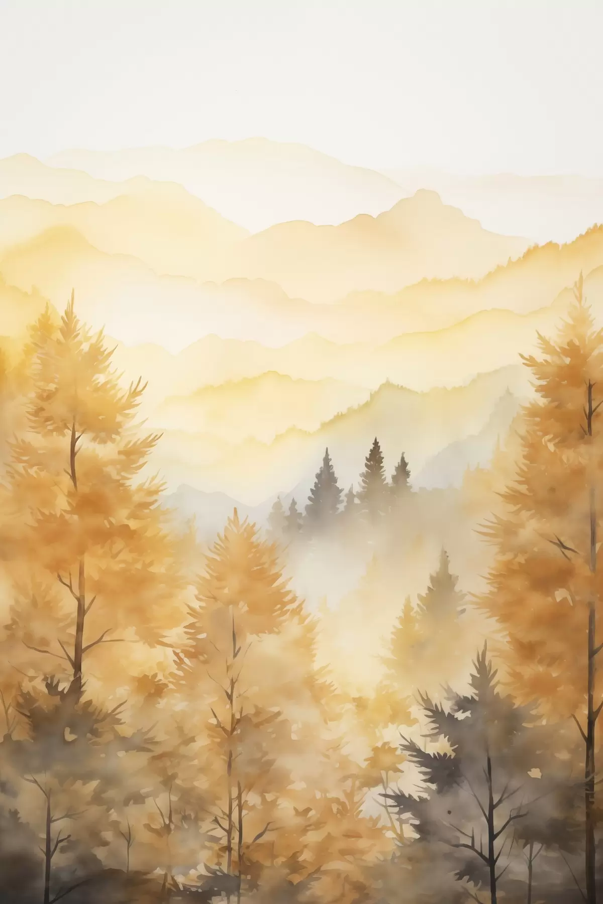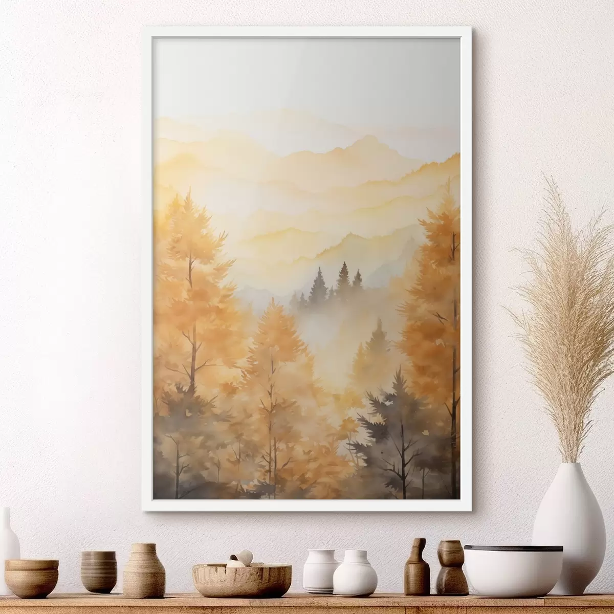 Poster Precioso bosque otoñal con montañas al fondo Nr f44614