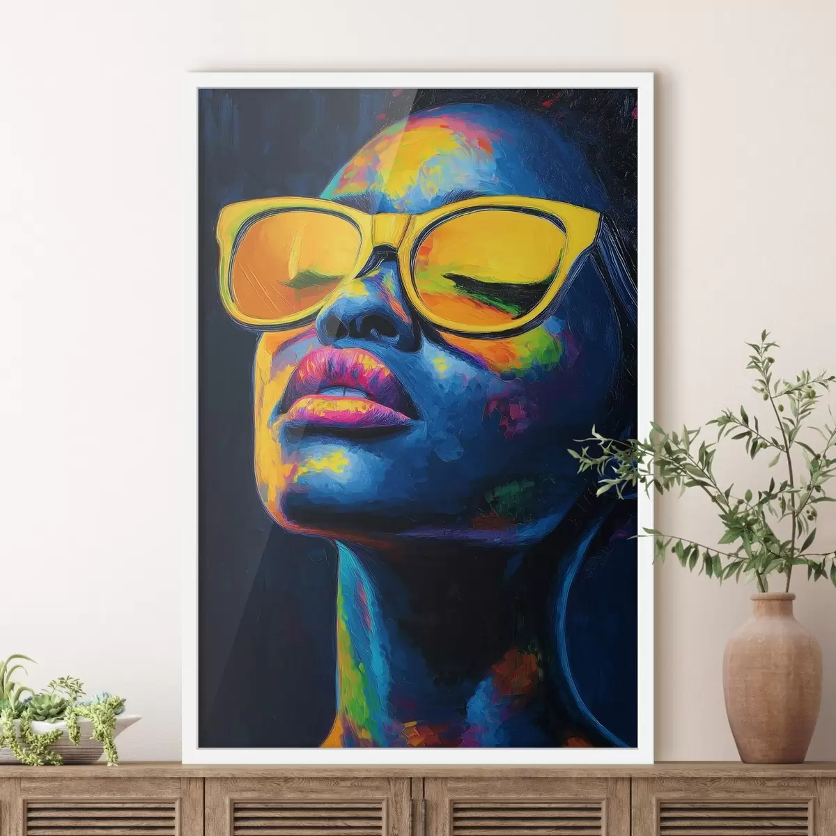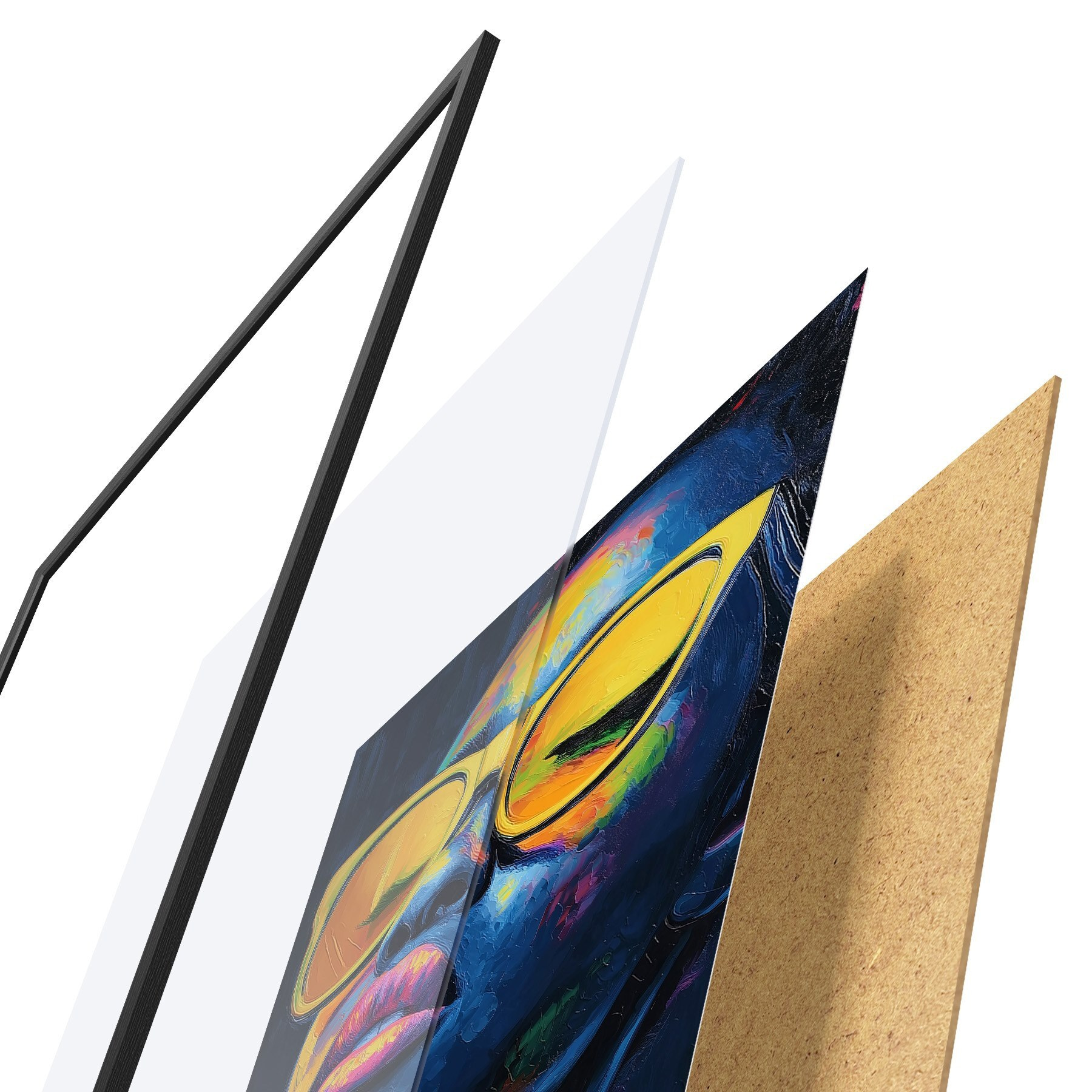 El póster consta de marco, plexiglás, imagen impresa y soporte de aglomerado. El póster puede colgarse inmediatamente en la pared gracias a los soportes de la parte posterior.