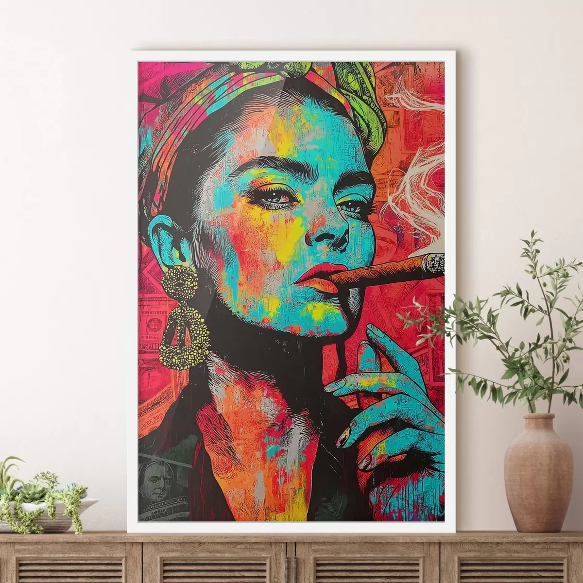 Vendemos cuadros en bastidor: se trata de un marco de madera sobre el que se extiende el lienzo. Este cuadro no necesita marco; puedes colgarlo directamente en la pared.