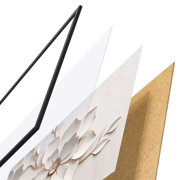 El póster consta de marco, plexiglás, imagen impresa y soporte de aglomerado. El póster puede colgarse inmediatamente en la pared gracias a los soportes de la parte posterior.
