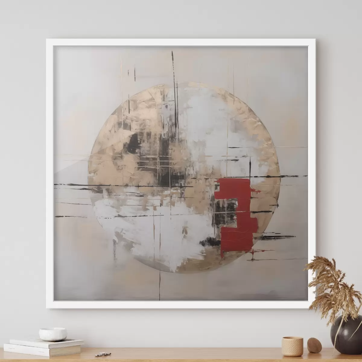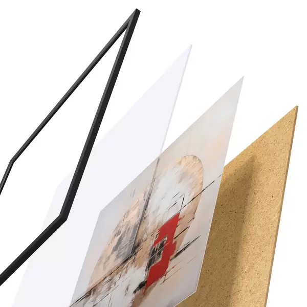 El póster consta de marco, plexiglás, imagen impresa y soporte de aglomerado. El póster puede colgarse inmediatamente en la pared gracias a los soportes de la parte posterior.