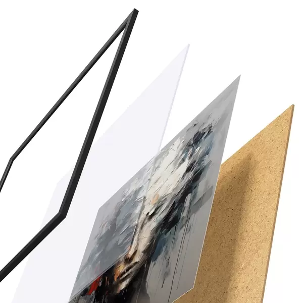 El póster consta de marco, plexiglás, imagen impresa y soporte de aglomerado. El póster puede colgarse inmediatamente en la pared gracias a los soportes de la parte posterior.