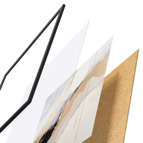 El póster consta de marco, plexiglás, imagen impresa y soporte de aglomerado. El póster puede colgarse inmediatamente en la pared gracias a los soportes de la parte posterior.