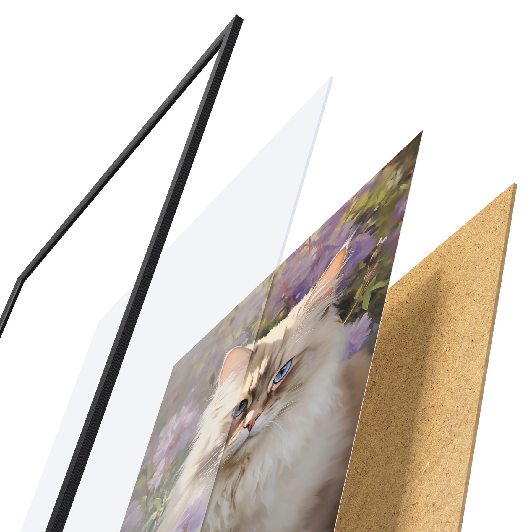 El póster consta de marco, plexiglás, imagen impresa y soporte de aglomerado. El póster puede colgarse inmediatamente en la pared gracias a los soportes de la parte posterior.