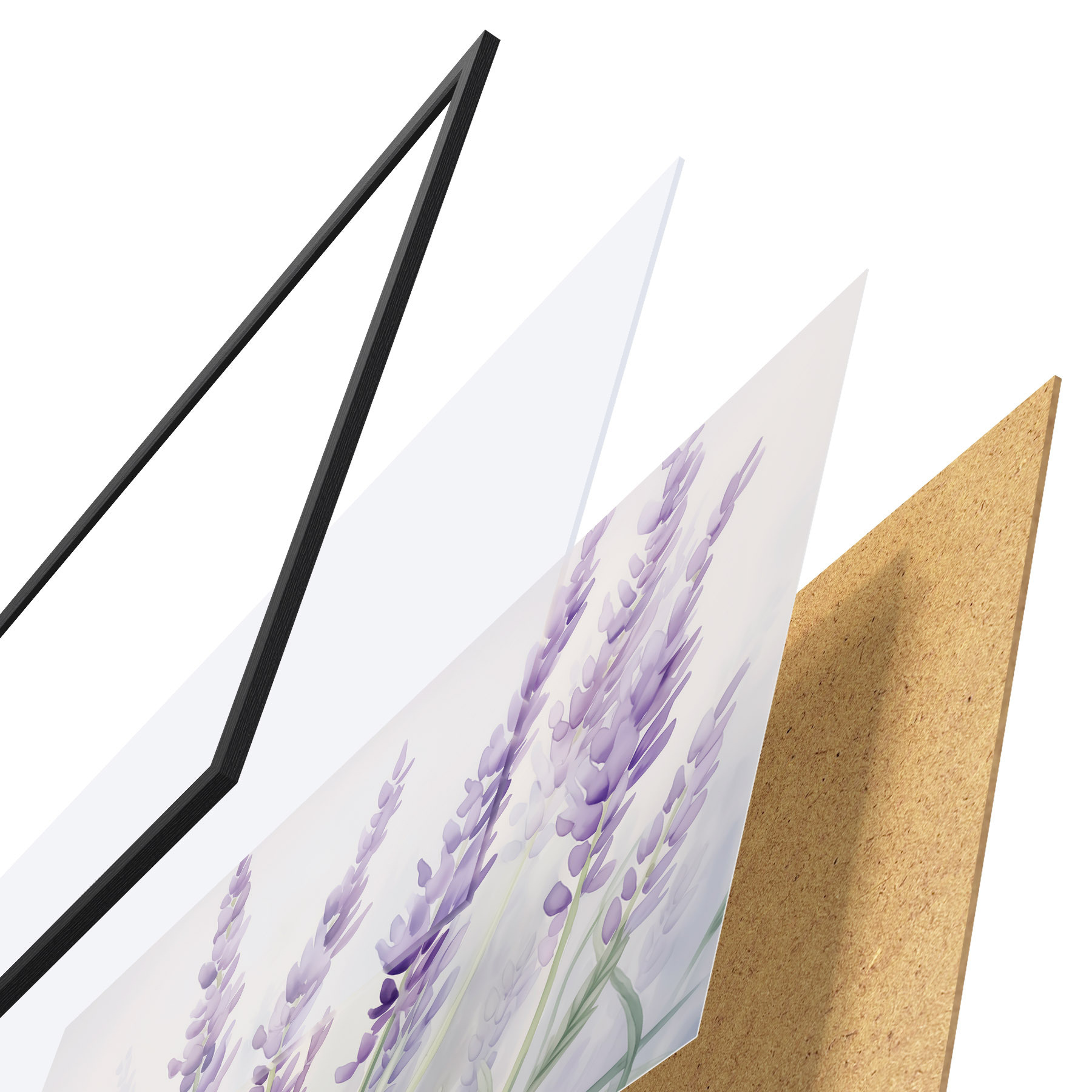 El póster consta de marco, plexiglás, imagen impresa y soporte de aglomerado. El póster puede colgarse inmediatamente en la pared gracias a los soportes de la parte posterior.