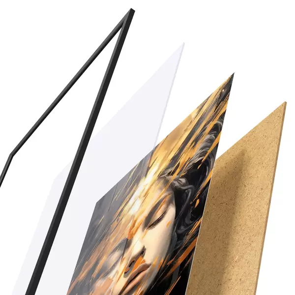 El póster consta de marco, plexiglás, imagen impresa y soporte de aglomerado. El póster puede colgarse inmediatamente en la pared gracias a los soportes de la parte posterior.