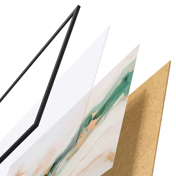 El póster consta de marco, plexiglás, imagen impresa y soporte de aglomerado. El póster puede colgarse inmediatamente en la pared gracias a los soportes de la parte posterior.