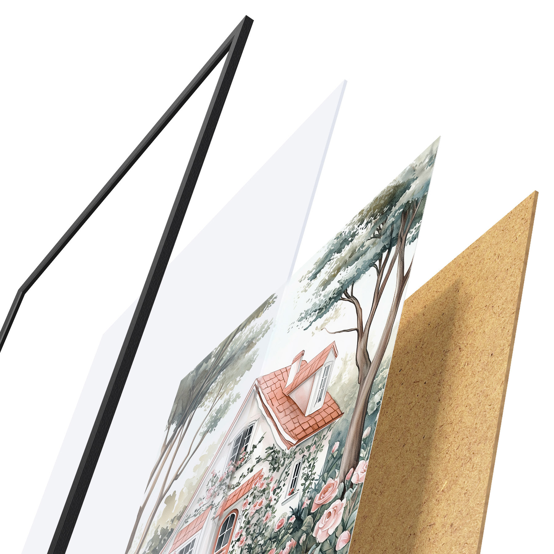 El póster consta de marco, plexiglás, imagen impresa y soporte de aglomerado. El póster puede colgarse inmediatamente en la pared gracias a los soportes de la parte posterior.