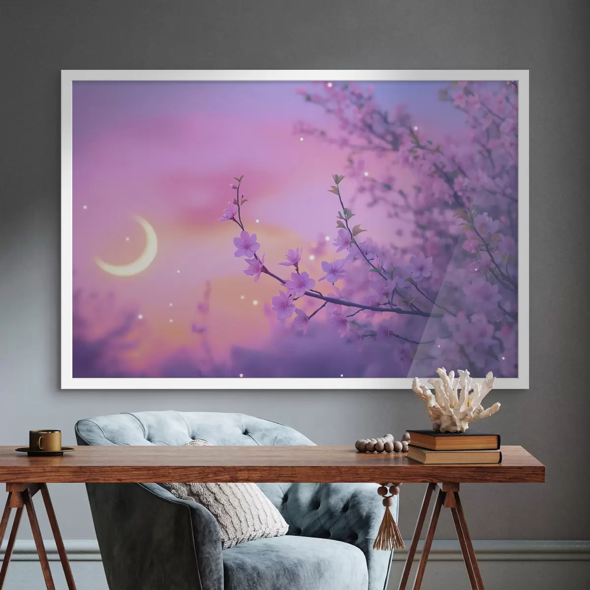 Poster Cielo púrpura con luna y cerezos Nr f44717