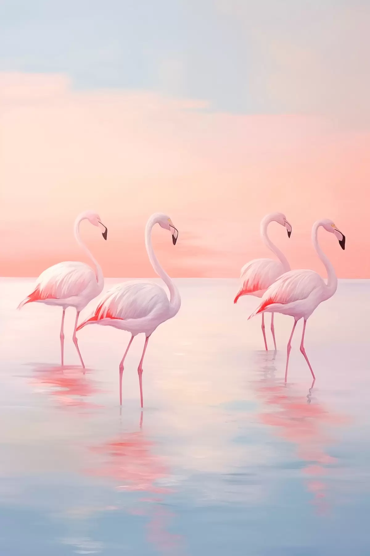 Poster Flamencos en aguas poco profundas al atardecer f44732