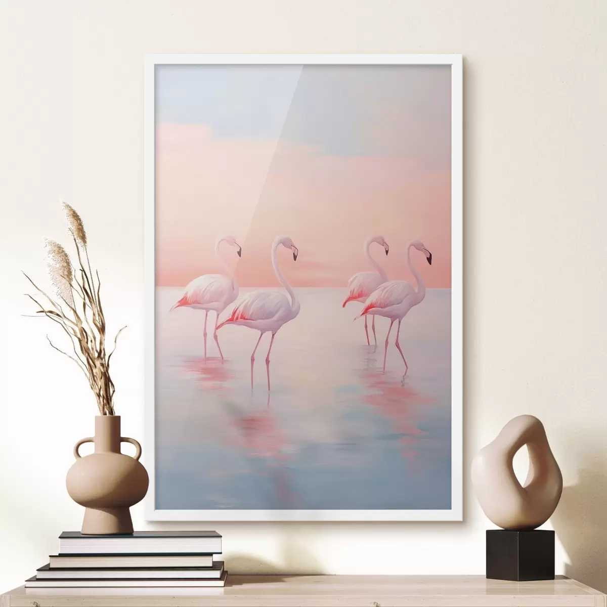 Poster Flamencos en aguas poco profundas al atardecer Nr f44732