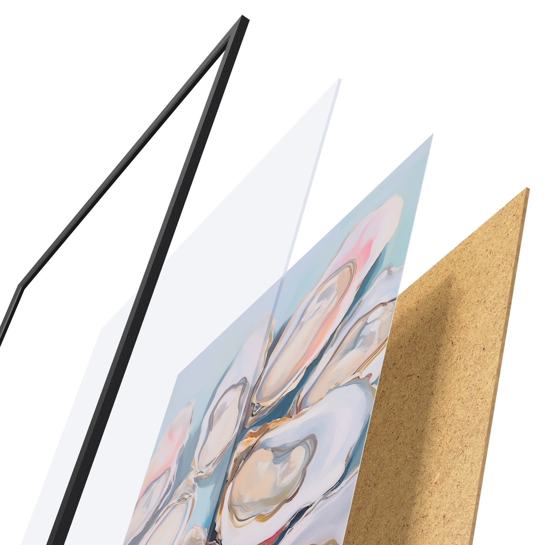 El póster consta de marco, plexiglás, imagen impresa y soporte de aglomerado. El póster puede colgarse inmediatamente en la pared gracias a los soportes de la parte posterior.