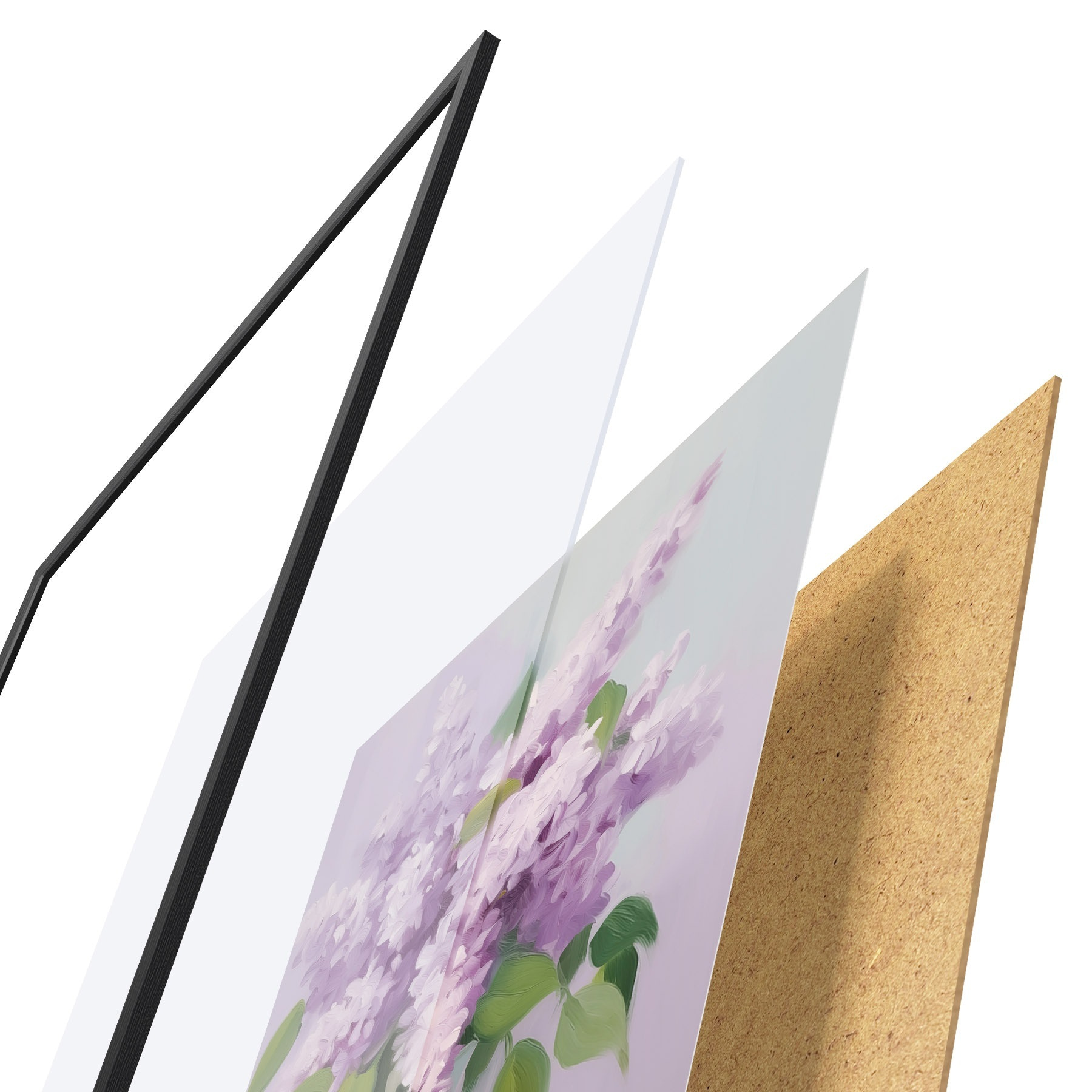 El póster consta de marco, plexiglás, imagen impresa y soporte de aglomerado. El póster puede colgarse inmediatamente en la pared gracias a los soportes de la parte posterior.