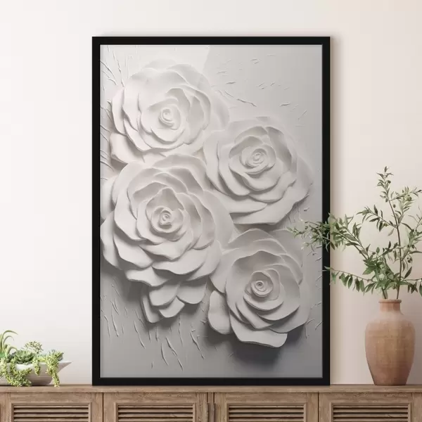 El póster consta de marco, plexiglás, imagen impresa y soporte de aglomerado. El póster puede colgarse inmediatamente en la pared gracias a los soportes de la parte posterior.