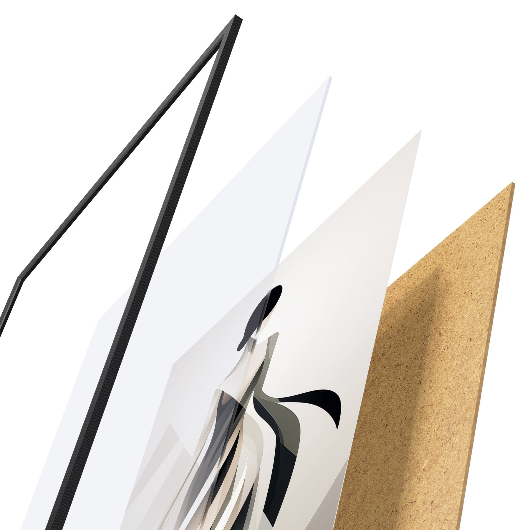 El póster consta de marco, plexiglás, imagen impresa y soporte de aglomerado. El póster puede colgarse inmediatamente en la pared gracias a los soportes de la parte posterior.