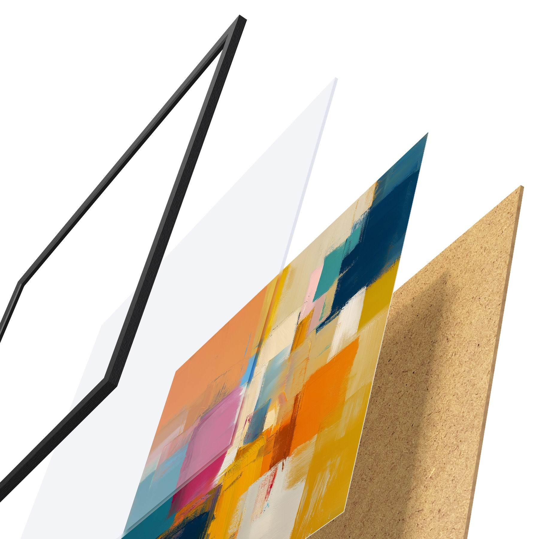 El póster consta de marco, plexiglás, imagen impresa y soporte de aglomerado. El póster puede colgarse inmediatamente en la pared gracias a los soportes de la parte posterior.