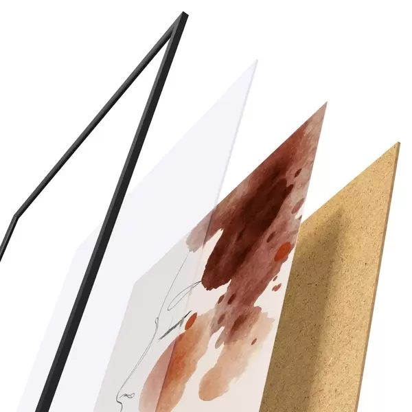 El póster consta de marco, plexiglás, imagen impresa y soporte de aglomerado. El póster puede colgarse inmediatamente en la pared gracias a los soportes de la parte posterior.