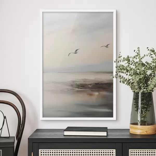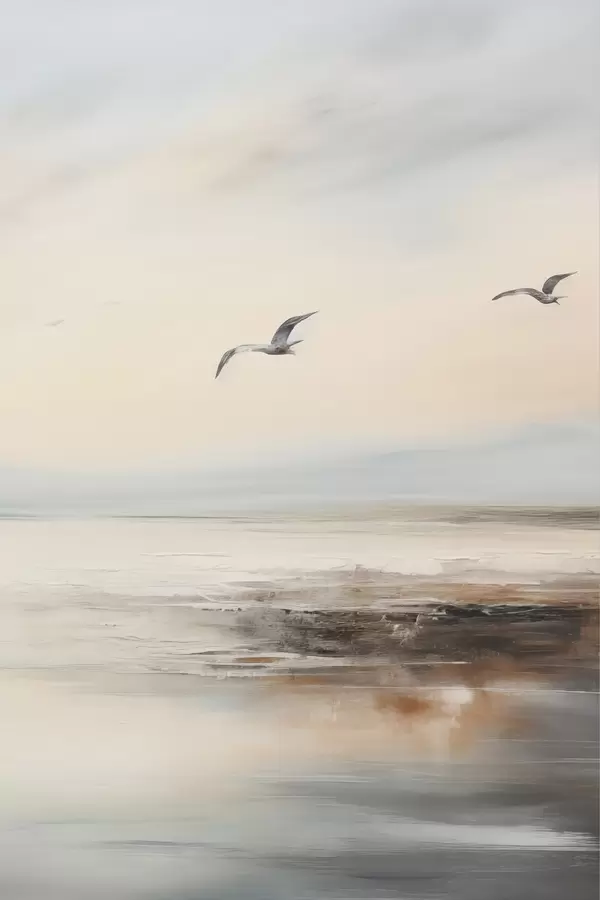 Poster Paisaje en colores pastel con gaviotas volando Nr f44763