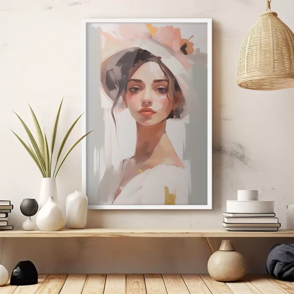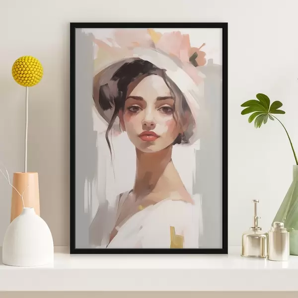 Poster Chica con sombrero imitación de pintura Nr f44778