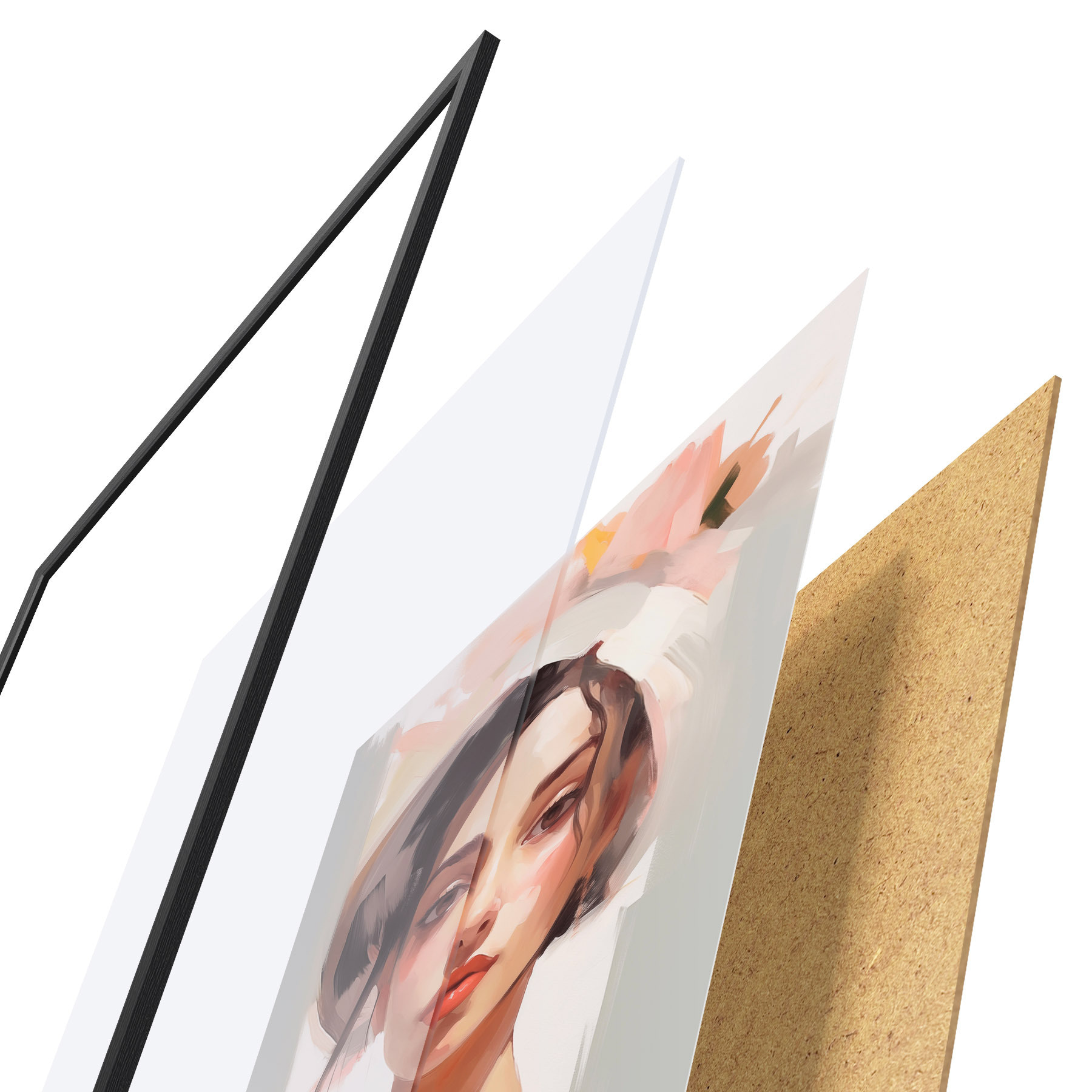 El póster consta de marco, plexiglás, imagen impresa y soporte de aglomerado. El póster puede colgarse inmediatamente en la pared gracias a los soportes de la parte posterior.