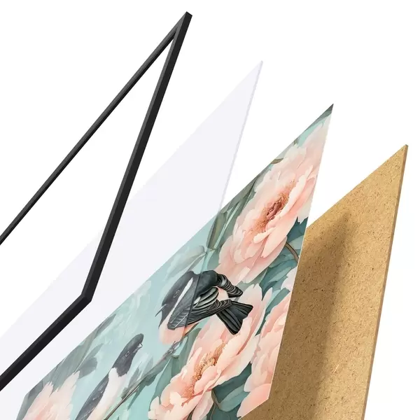 El póster consta de marco, plexiglás, imagen impresa y soporte de aglomerado. El póster puede colgarse inmediatamente en la pared gracias a los soportes de la parte posterior.