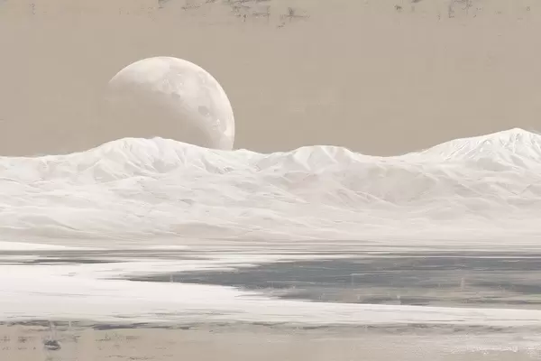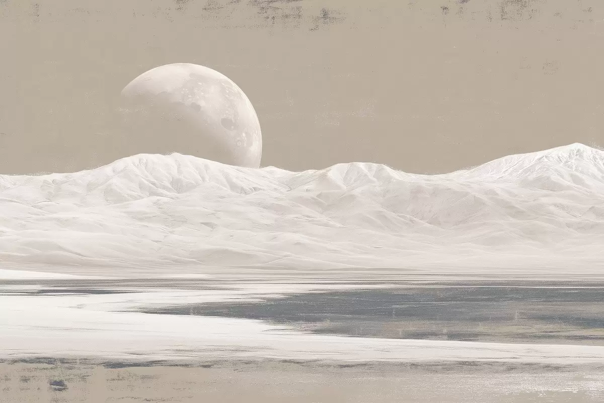 Poster Paisaje desértico con la luna en el horizonte f44787