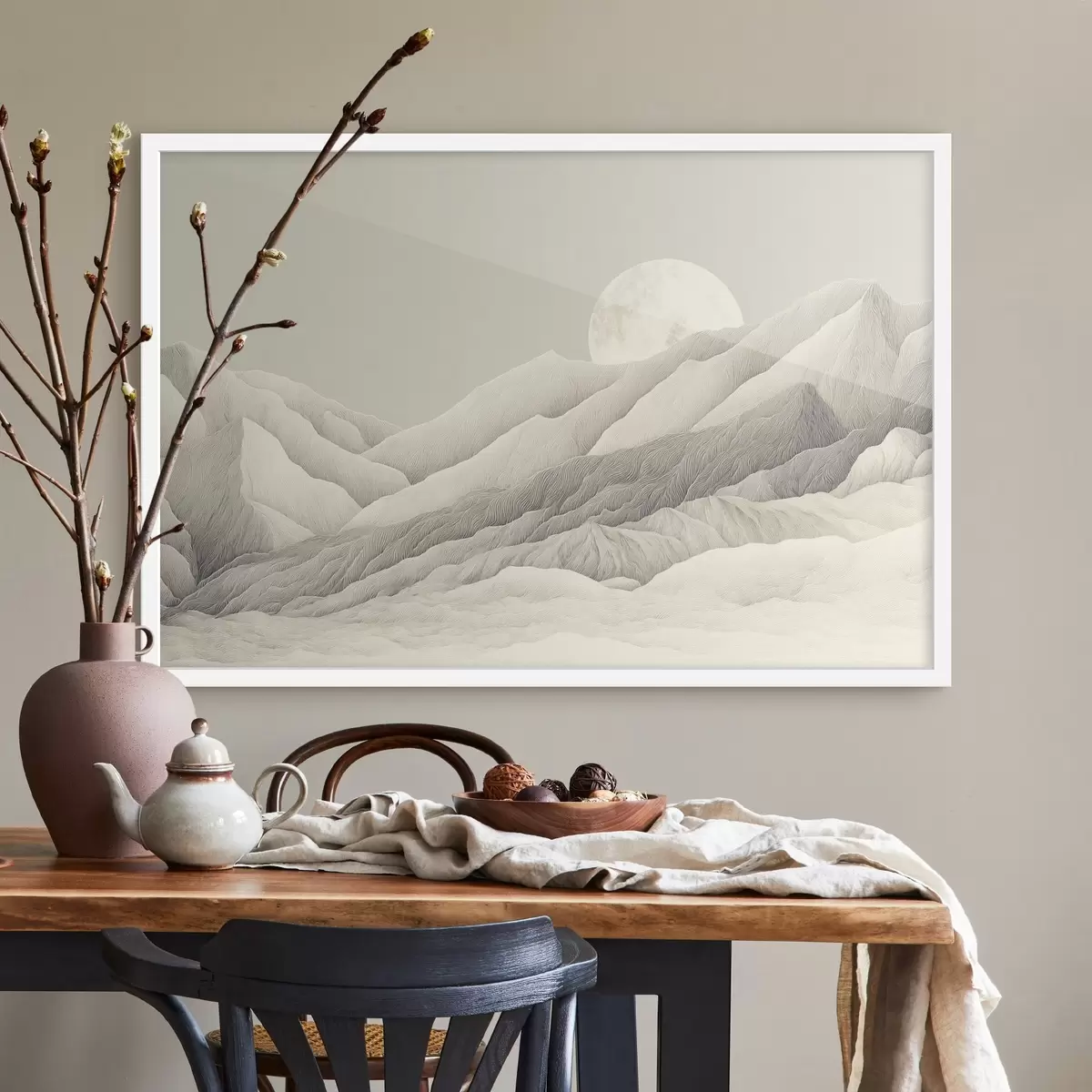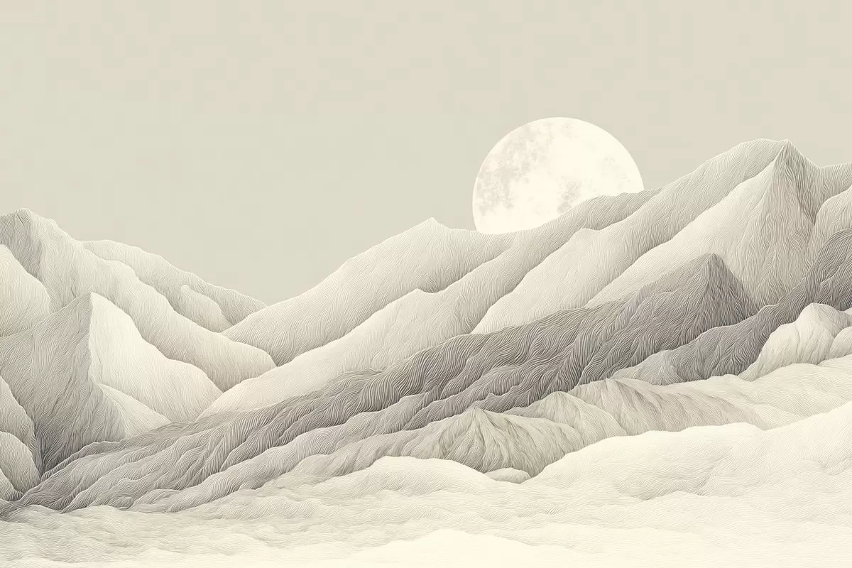 Poster Montañas con luna, dibujo detallado f44788