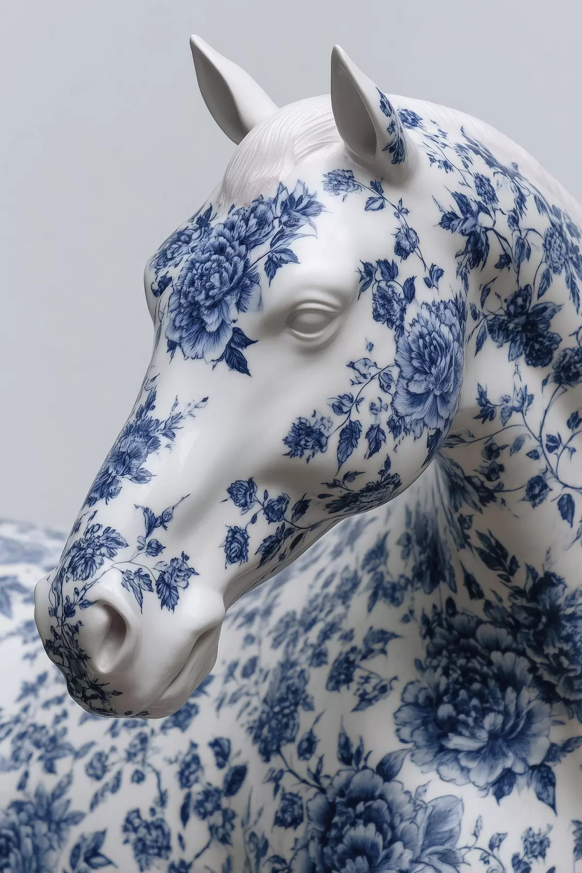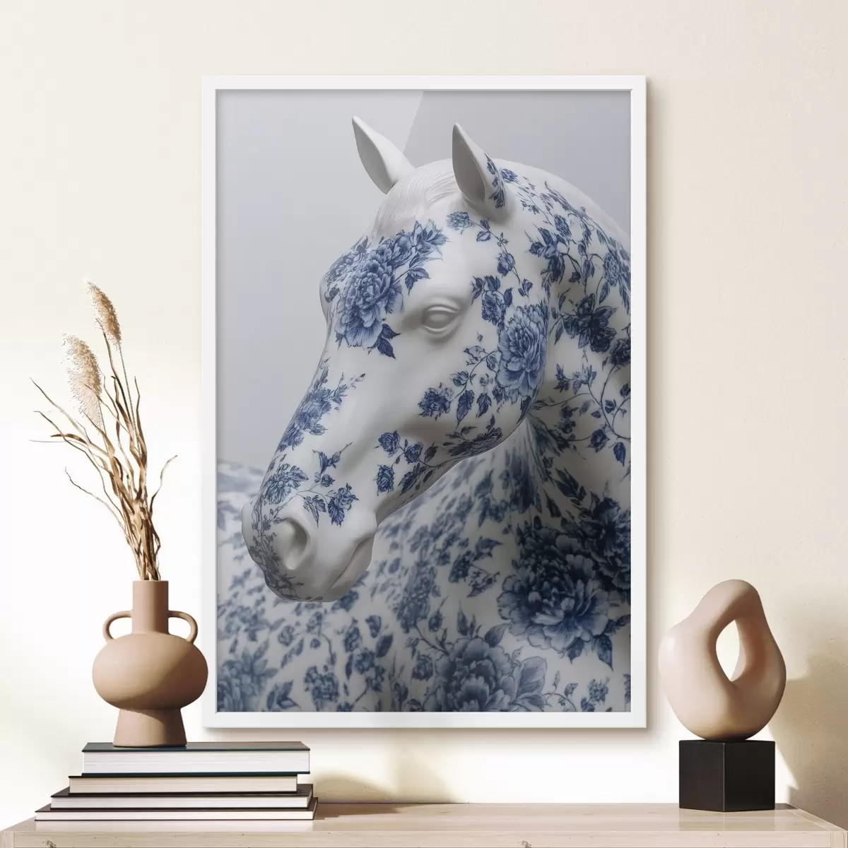 Poster Caballo de porcelana con estampado de flores azules Nr f44789
