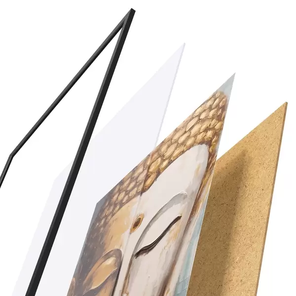 El póster consta de marco, plexiglás, imagen impresa y soporte de aglomerado. El póster puede colgarse inmediatamente en la pared gracias a los soportes de la parte posterior.