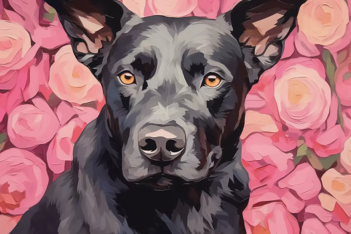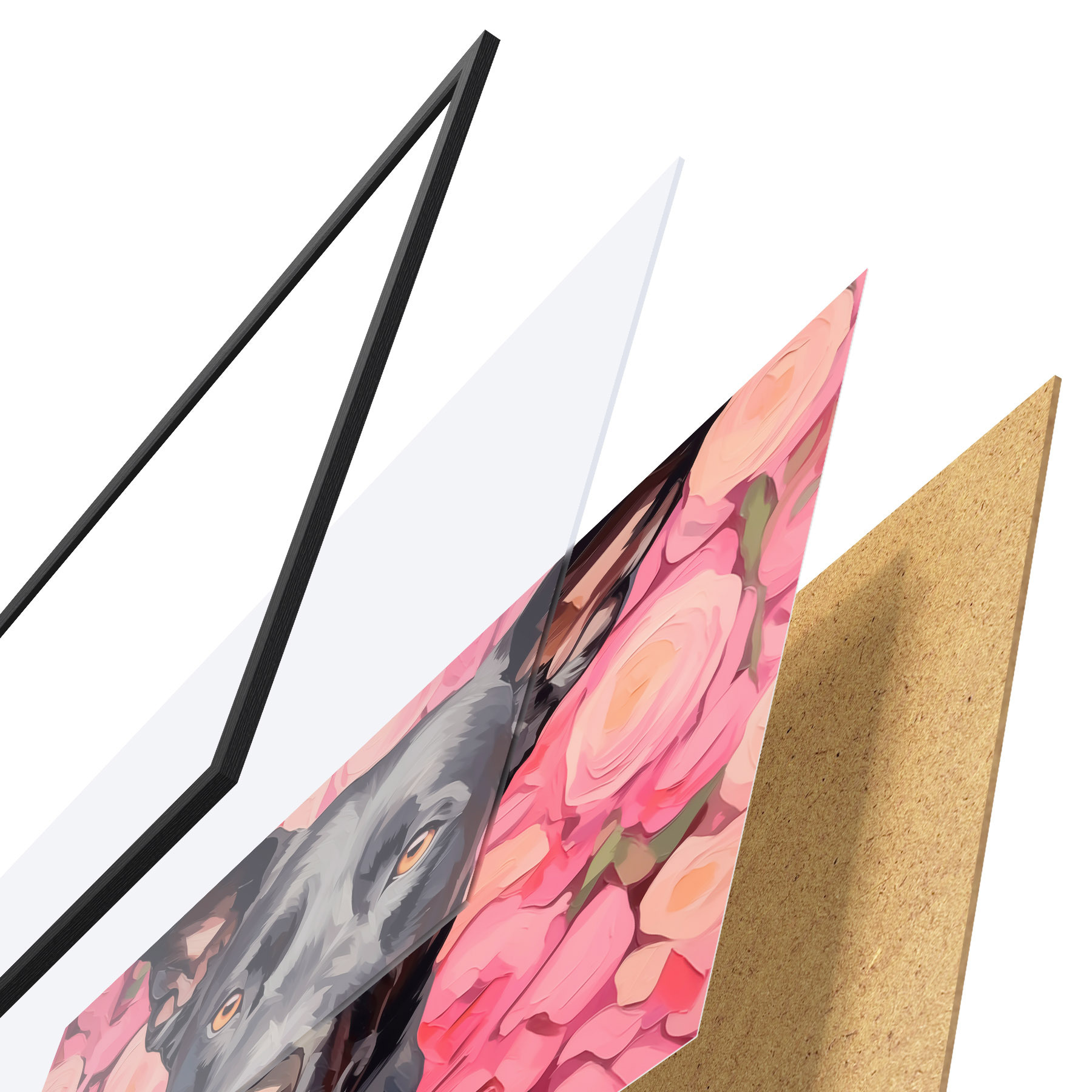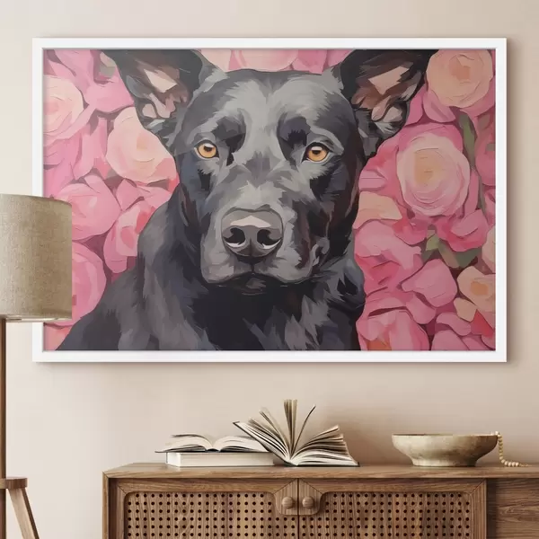 Poster Perro negro sobre fondo abstracto de rosas Nr f44817