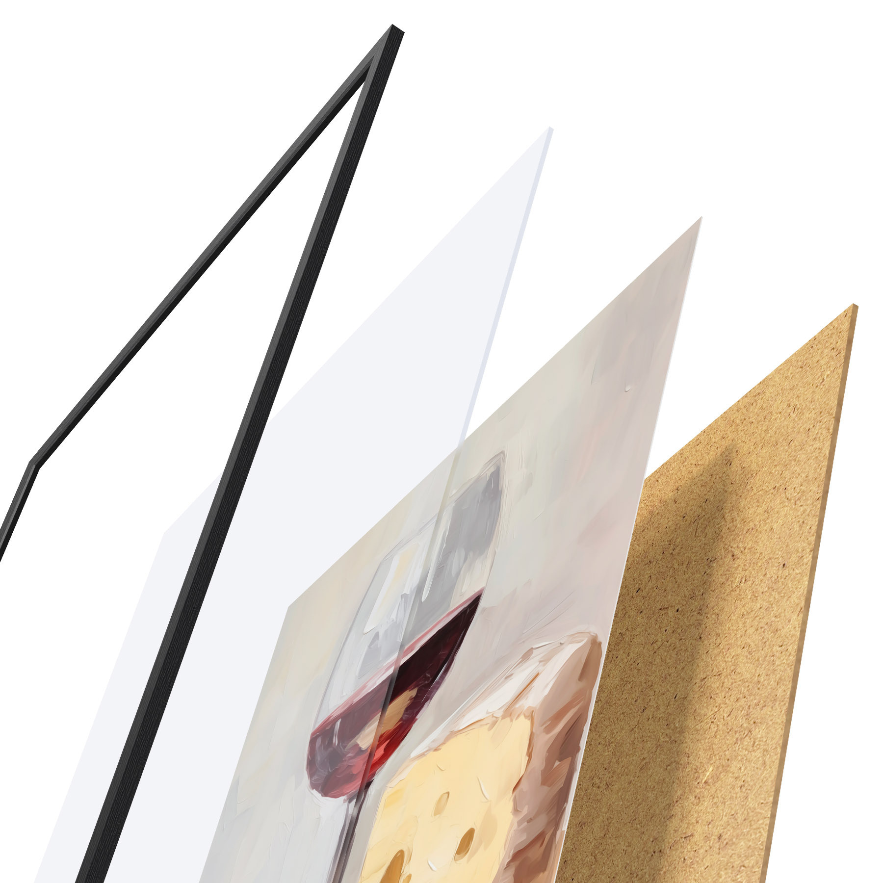 El póster consta de marco, plexiglás, imagen impresa y soporte de aglomerado. El póster puede colgarse inmediatamente en la pared gracias a los soportes de la parte posterior.