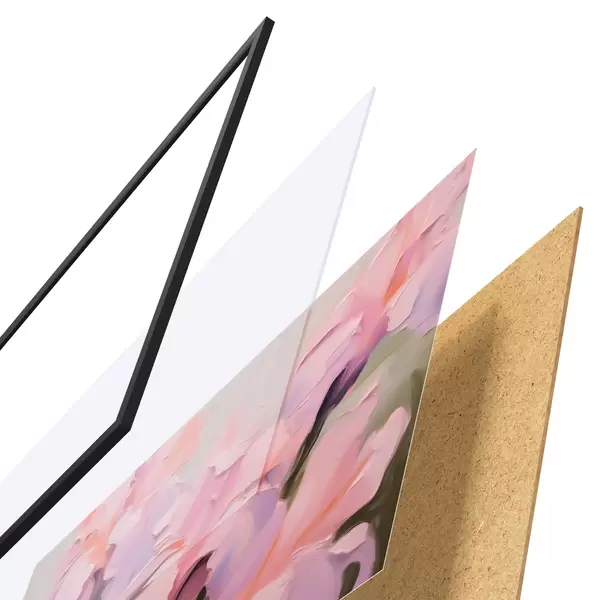 El póster consta de marco, plexiglás, imagen impresa y soporte de aglomerado. El póster puede colgarse inmediatamente en la pared gracias a los soportes de la parte posterior.