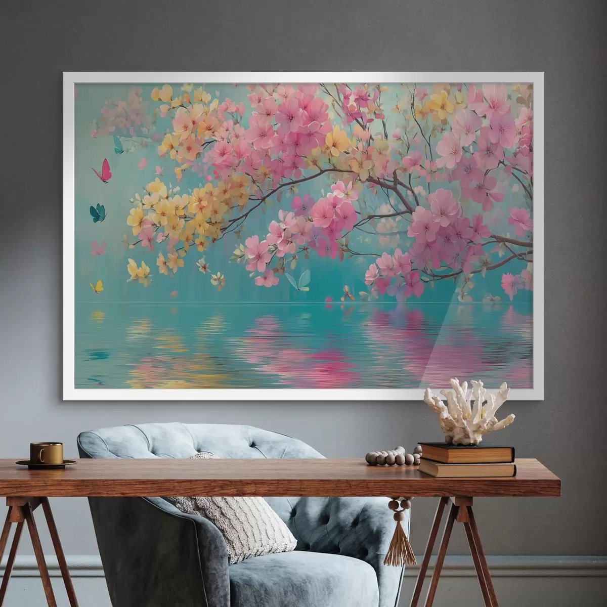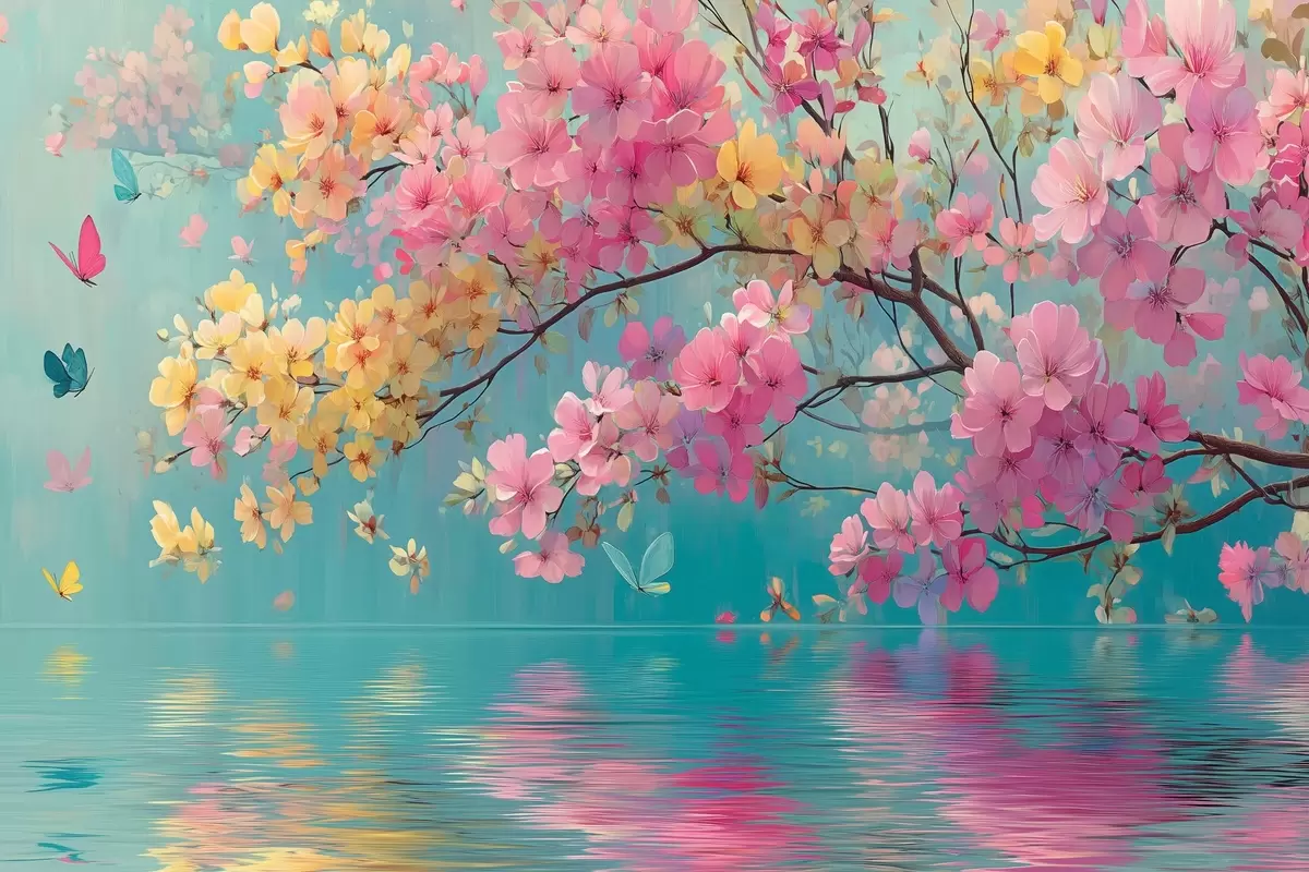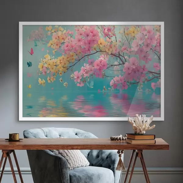 Poster Rama en flor sobre el agua en estilo acuarela Nr f44844