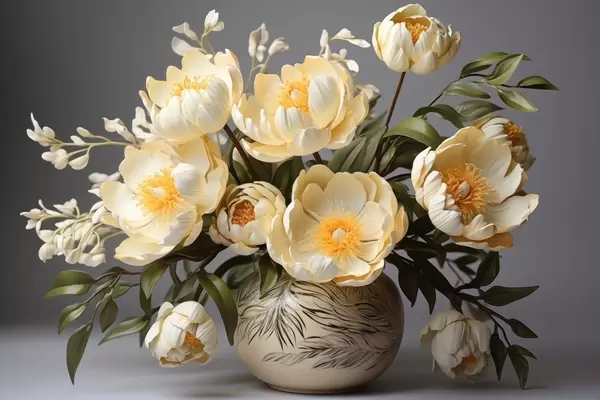 Poster Flores delicadas con centros amarillos en un jarrón estampado Nr f44847