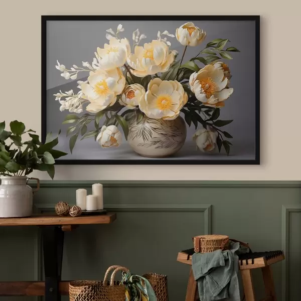 Poster Flores delicadas con centros amarillos en un jarrón estampado f44847