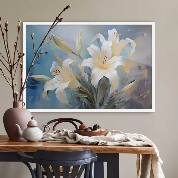 Poster Lirios abstractos sobre fondo colorido en estilo artístico f44849