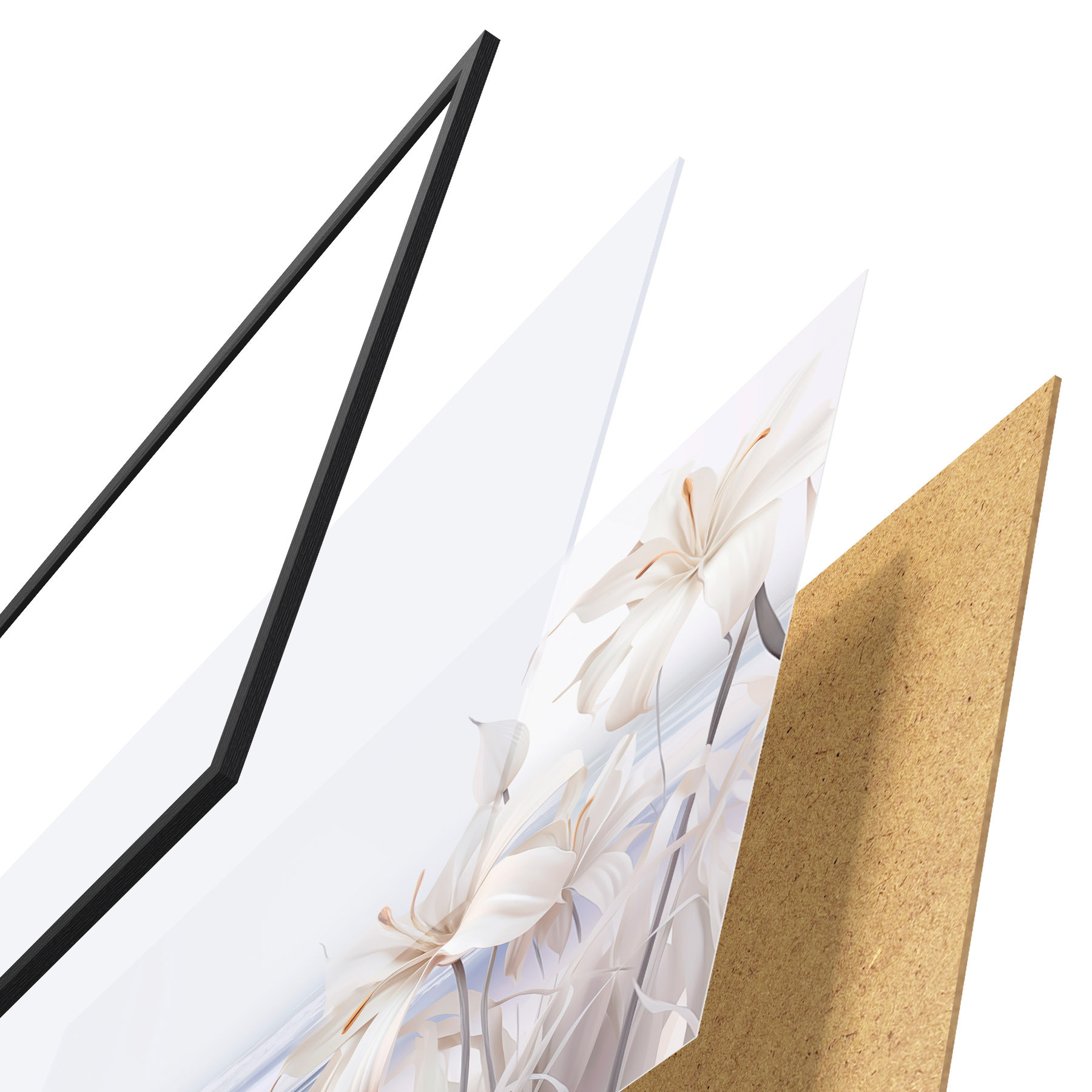 El póster consta de marco, plexiglás, imagen impresa y soporte de aglomerado. El póster puede colgarse inmediatamente en la pared gracias a los soportes de la parte posterior.