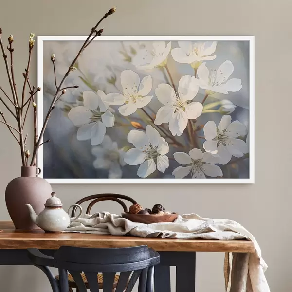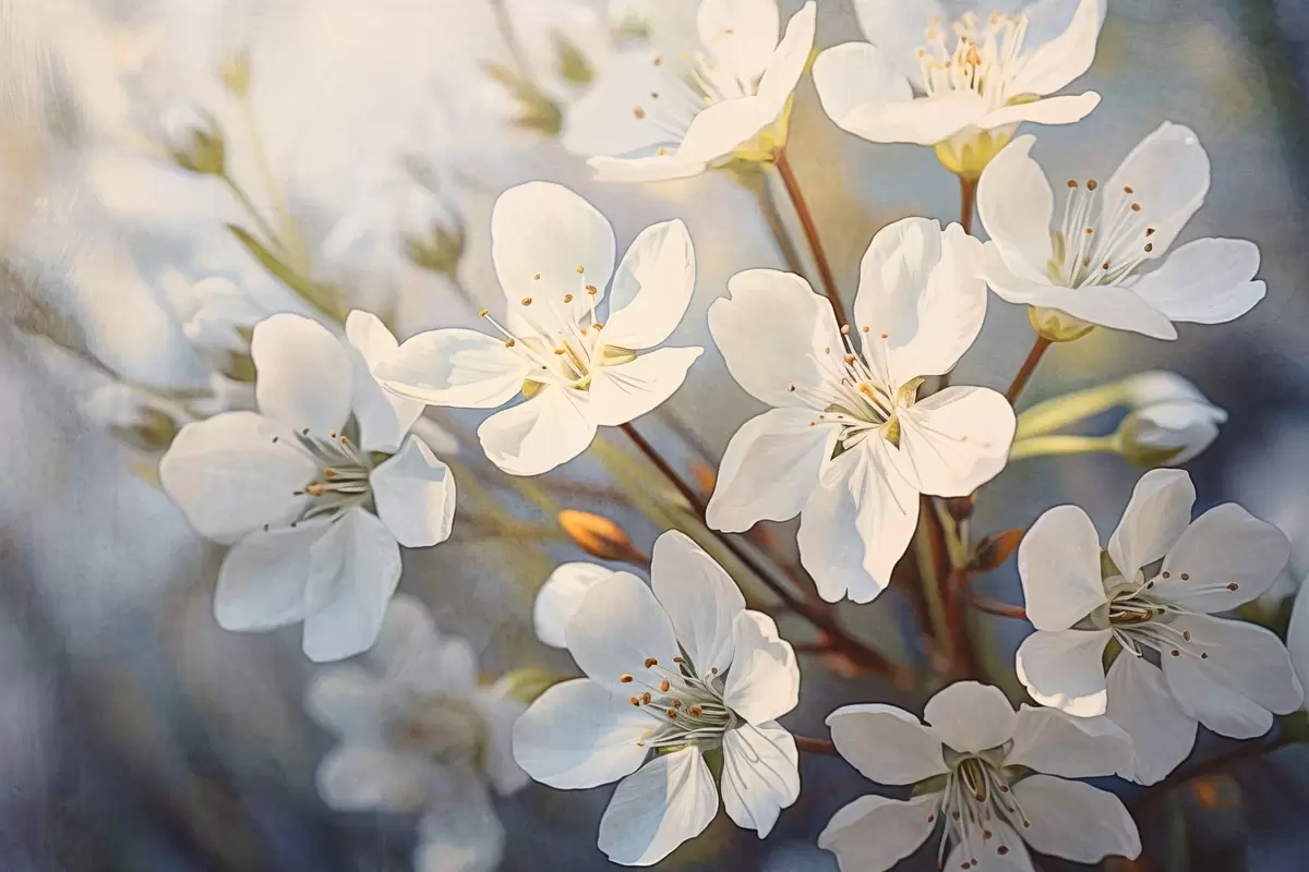 Poster Flores de cerezo blancas texturizadas en estilo acuarela, pétalos delicados, estación primaveral Nr f44859