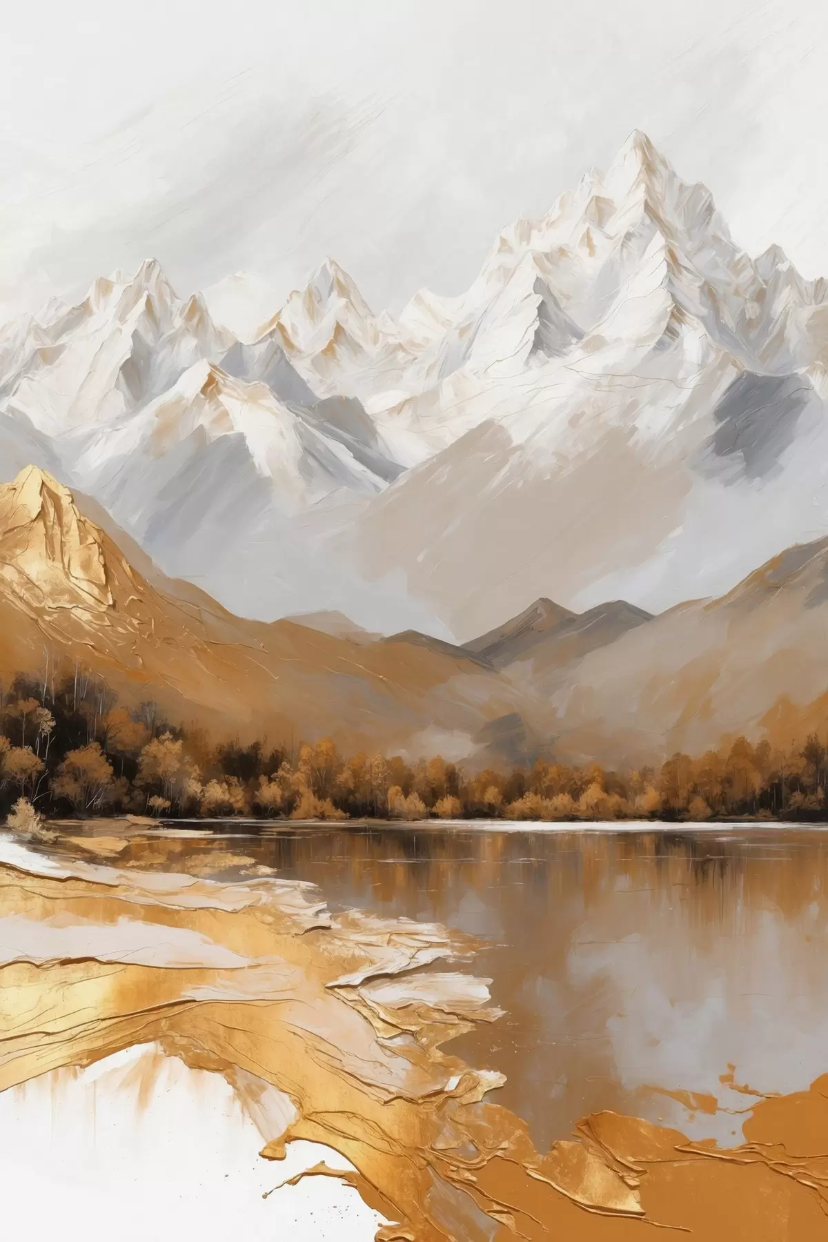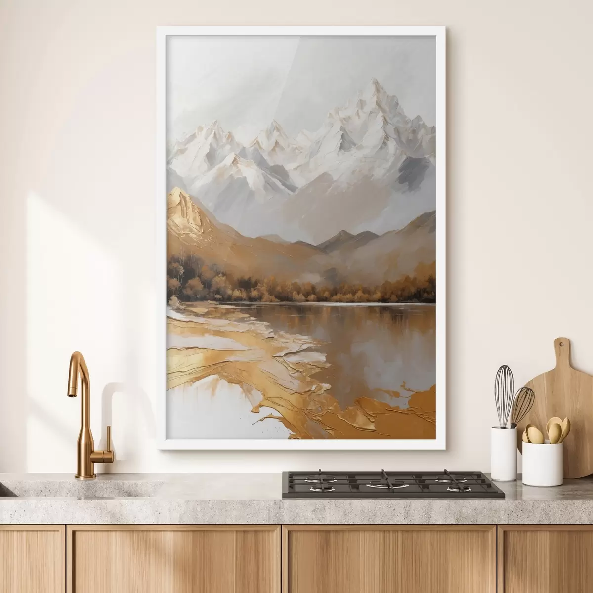 Poster Paisaje de montaña con un lago en colores cálidos f44877