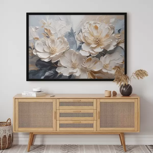 Poster Peonías volumétricas de color crema sobre fondo azul claro Nr f44880