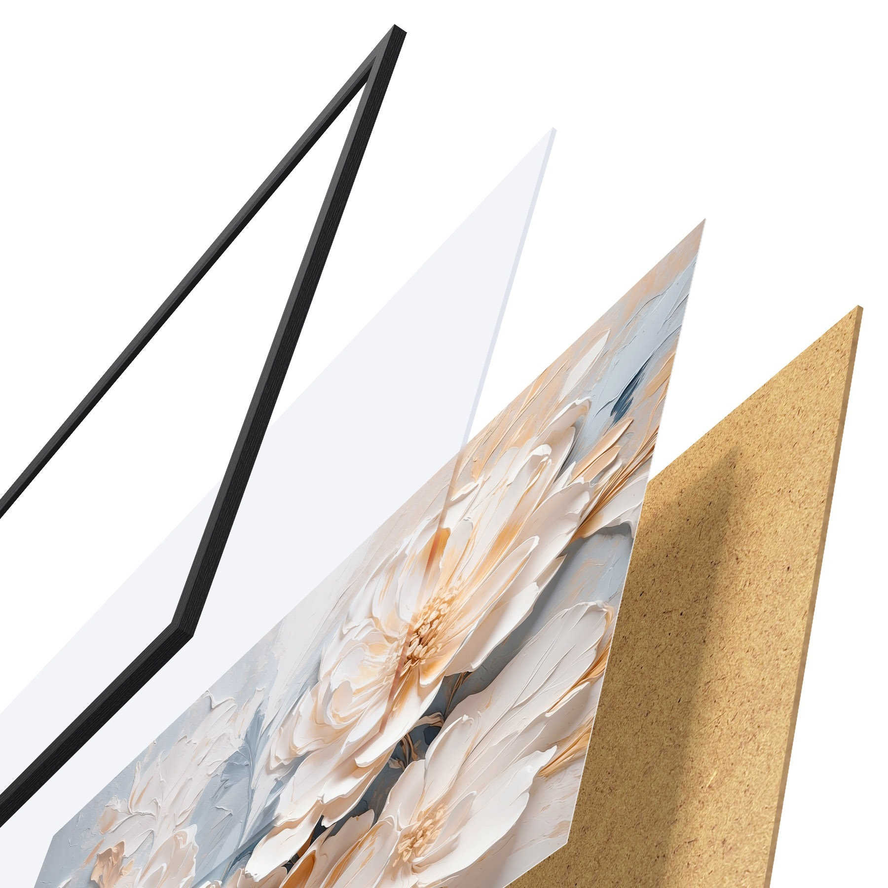 El póster consta de marco, plexiglás, imagen impresa y soporte de aglomerado. El póster puede colgarse inmediatamente en la pared gracias a los soportes de la parte posterior.