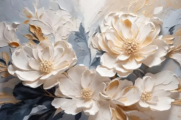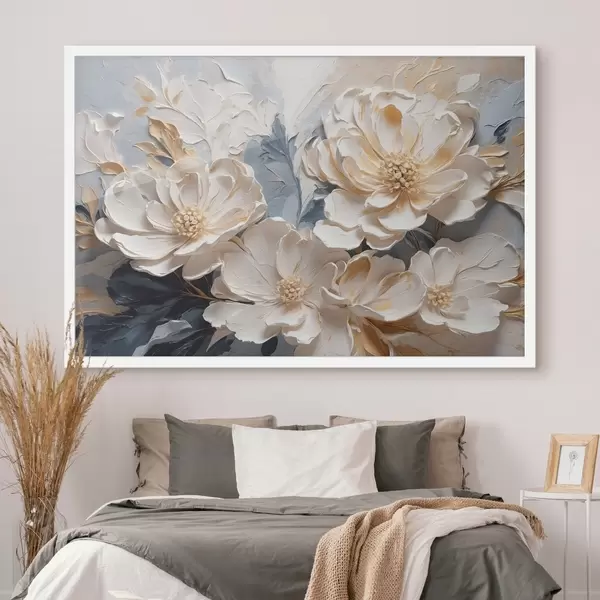 Poster Peonías volumétricas de color crema sobre fondo azul claro Nr f44880